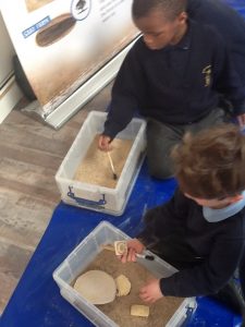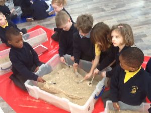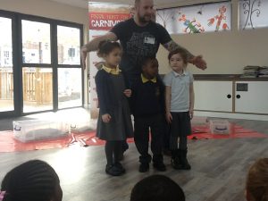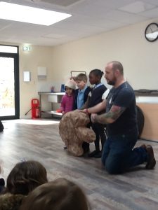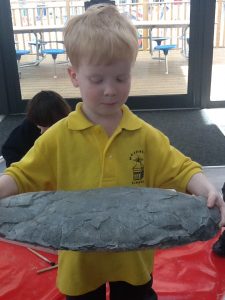 Puffin Class were visited by a palaeontologist called James this week. Together we explored a variety of fossils and discovered: a dinosaur egg, a Stegosaurus’ tail spike, an Allosaurus’ claw, ammonites and much, much more! We learnt that a T-Rex footprint is big enough to squish 3 children! James brought two special dinosaur guests with him; a baby Velociraptor called Jack and an enormous Allosaurus called Millie. We had to be extremely brave and cautious when meeting the dinosaurs. Everybody was truly captivated and engaged and it was a day the children in Puffin Class will never forget!